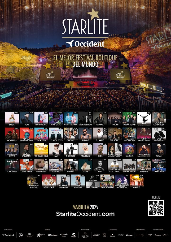 La XIV edición del Starlite Occident regresa del 13 de junio al 29 de agosto en la emblemática Cantera de Nagüeles, ofreciendo un festival boutique único en entorno natural con una acústica privilegiada y tecnología sonora de vanguardia. Durante más de 60 noches, el escenario marbellí acogerá más de 50 conciertos con propuestas internacionales, pop urbano, flamenco y música española contemporánea.